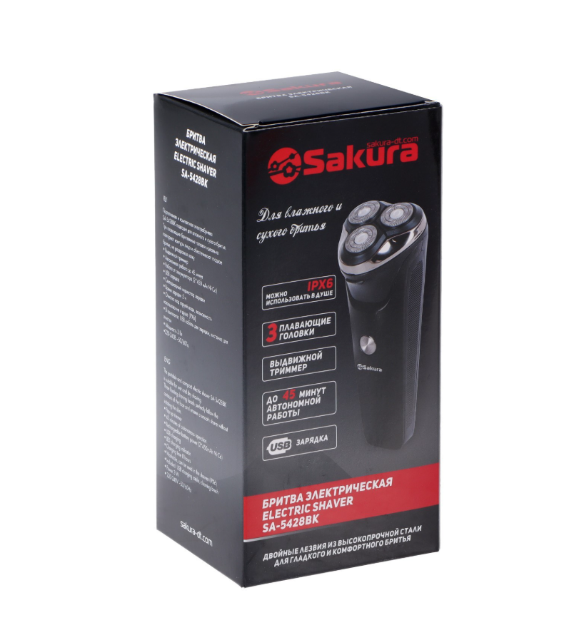 Бритва электрическая - 3 гол. триммер сух/влажн.бритье черн.SA-5428BK