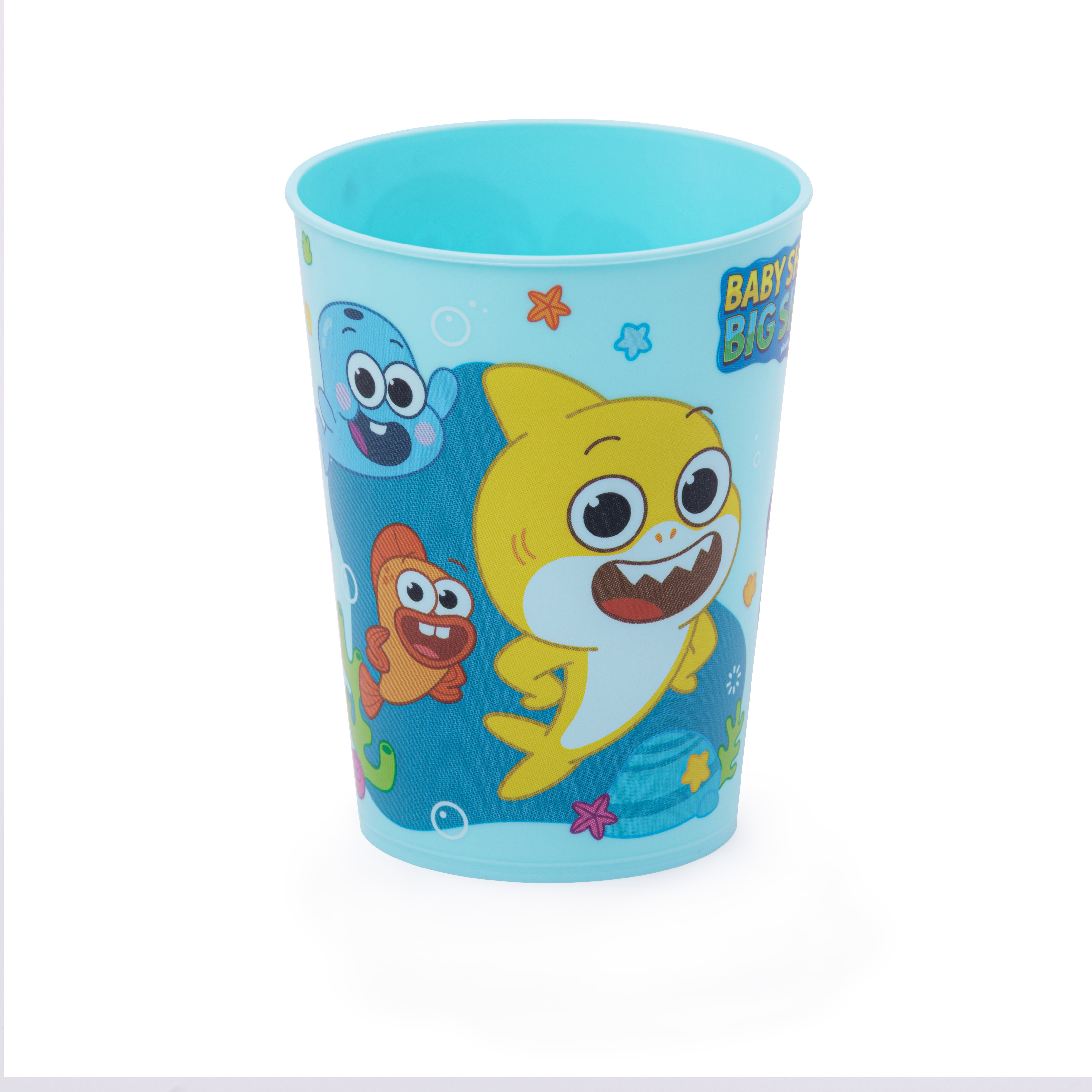 Изделие изготовлено из высококачественного пищевого пластика, безопасного для здоровья человека. Легкий вес и небольшой объем позволят взять стакан с собой в дорогу, на дачу или пикник. Дизайн с персонажами мультсериала «Baby Shark's Big Show!» делает изделие оригинальным. Изделие не бьется, что также безопасно для малыша, легко моется водой и рассчитано на многоразовое использование.